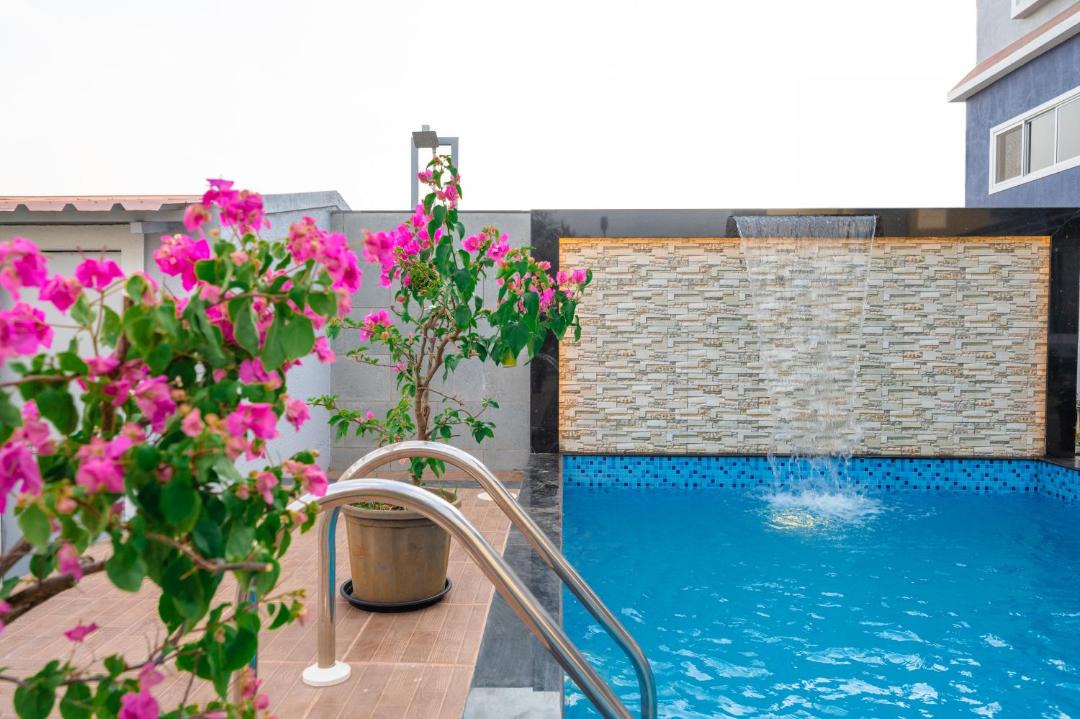 Situated in Panchgani, 4.1 km from Parsi Point and 8.1 km from Sydney Point, Flower Villa Aster features accommodation with free WiFi, air conditioning, an outdoor swimming pool and a terrace. This villa has a private pool, a garden and free private parking. The villa features 6 bedrooms, 6 bathrooms, bed linen, towels, a flat-screen TV, a dining area, a fully equipped kitchen, and a patio with pool views. A car rental service is available at the villa. Lingmala Falls is 8.7 km from Flower Villa Aster, while Mahabaleshwar Temple is 16 km from the property. The nearest airport is Pune International, 116 km from the accommodation, and the property offers a paid airport shuttle service.