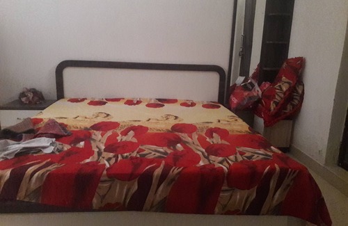 This is a room in my house. It includes a double bed and a wardrobe, Bathroom is attached. Room size is 10×15 Feet.